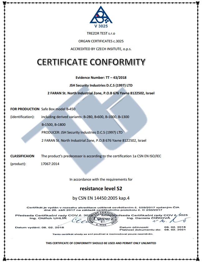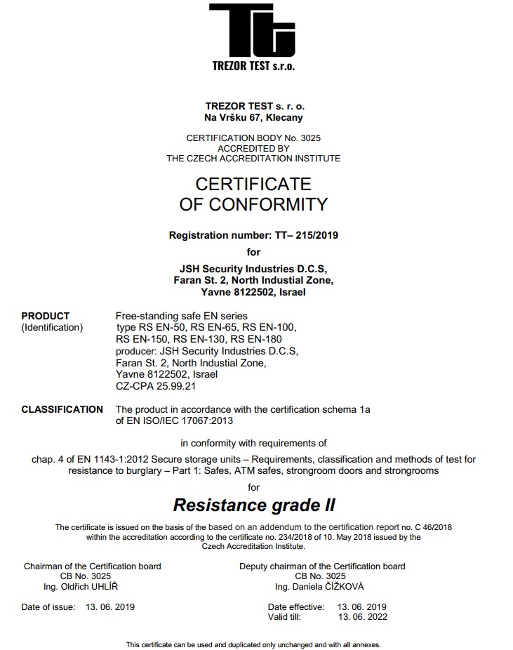 תו תקן לסדרה RS-EN כספות כבדות.תקן אירופי GRADE 2 1143,מקביל לתקן TL-30,מקביל לתקן הישראלי C3.